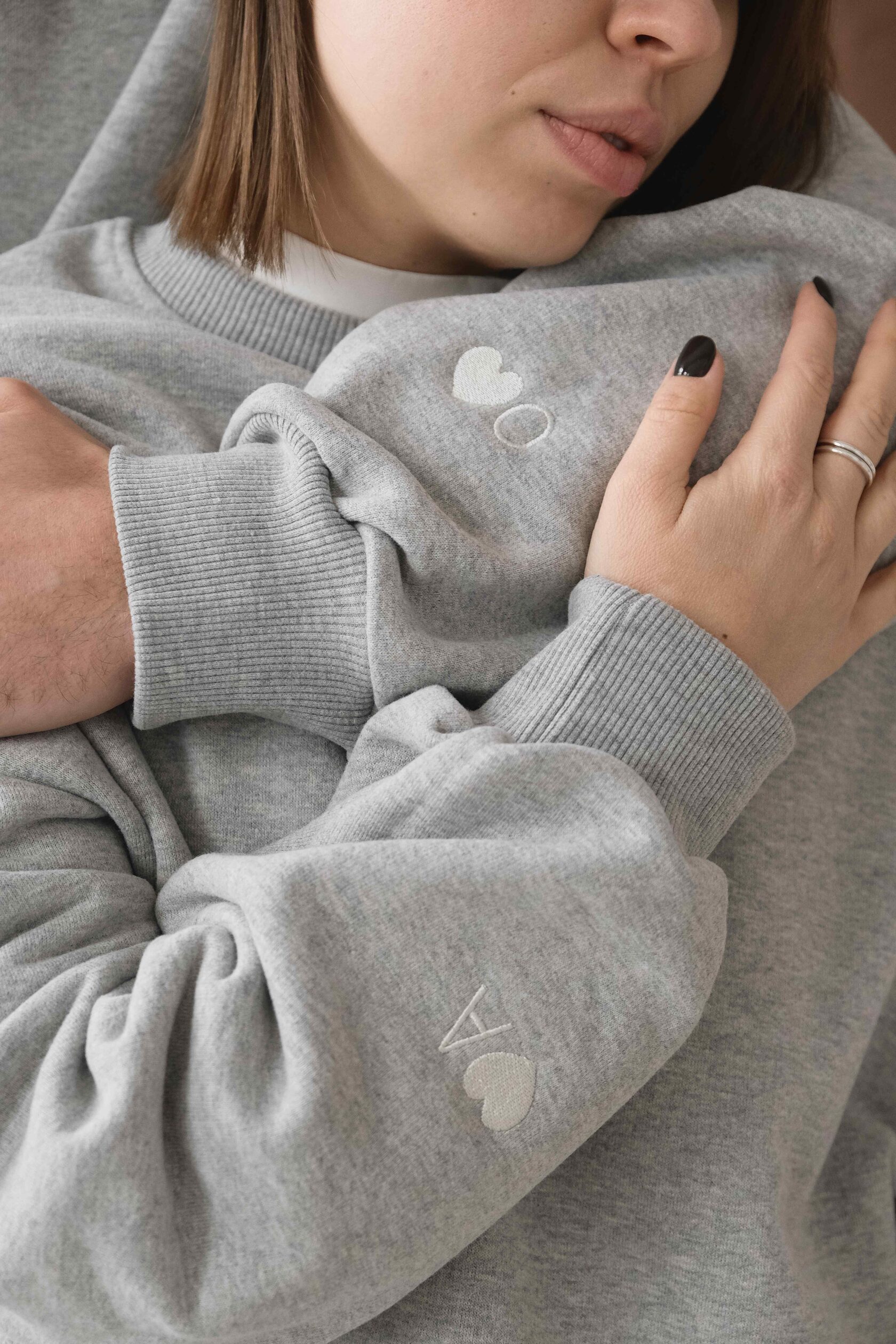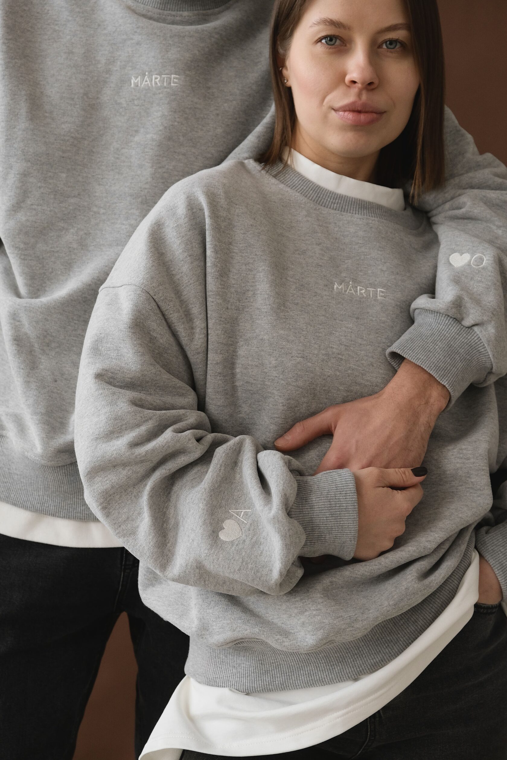 Парные свитшоты с индивидуальной вышивкой Сердце - как символ, первая буква имени - как личная деталь Спокойный, теплый подарок без лишних слов - для него и для нее